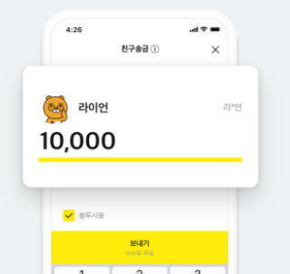 송금 방법은 친구를 선택하거나 혹은 계좌번호 입력을 통해 송금할 수 있는데, 계좌번호를 몰라도 바로 송금을 할 수 있다는 장점이 있습니다.
