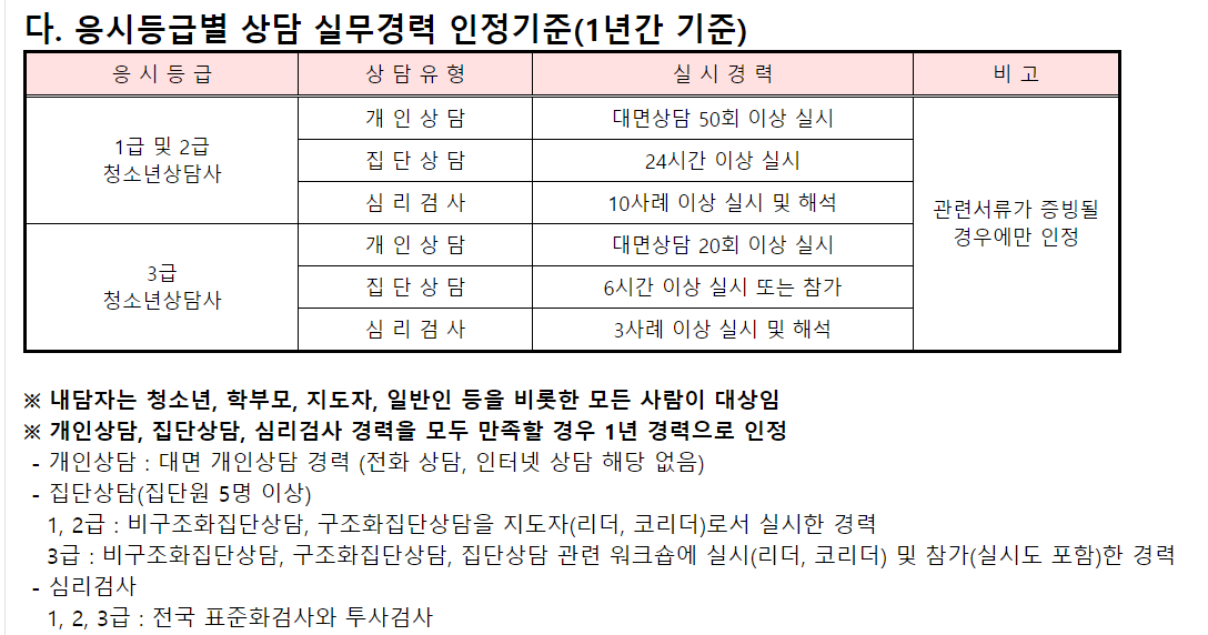 하지만 이 자격증은 상담과 관련된 자격증이며, 매우 전문성을 요구하기 때문에 해당 자격을 만족해야 응시가 가능합니다.