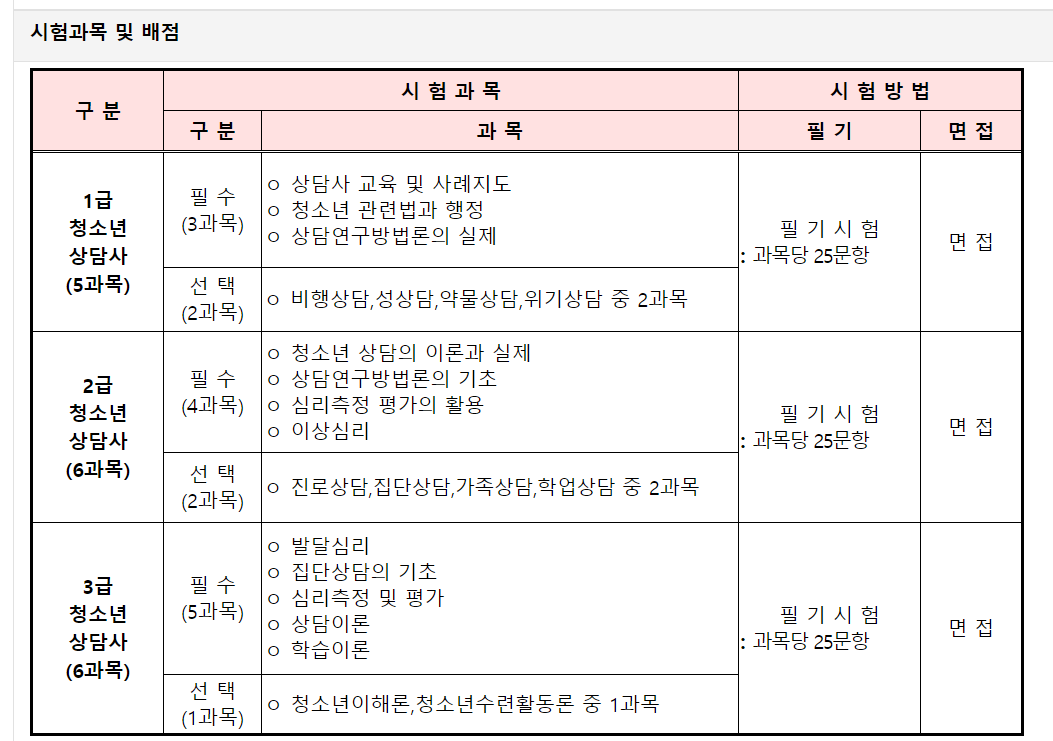 청소년 상담사 시험은 필기, 면접, 연수 3단계입니다.