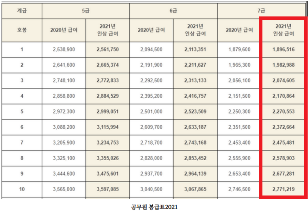 따라서 군무원 월급은 공무원 연봉표를 참고할 수 있습니다.