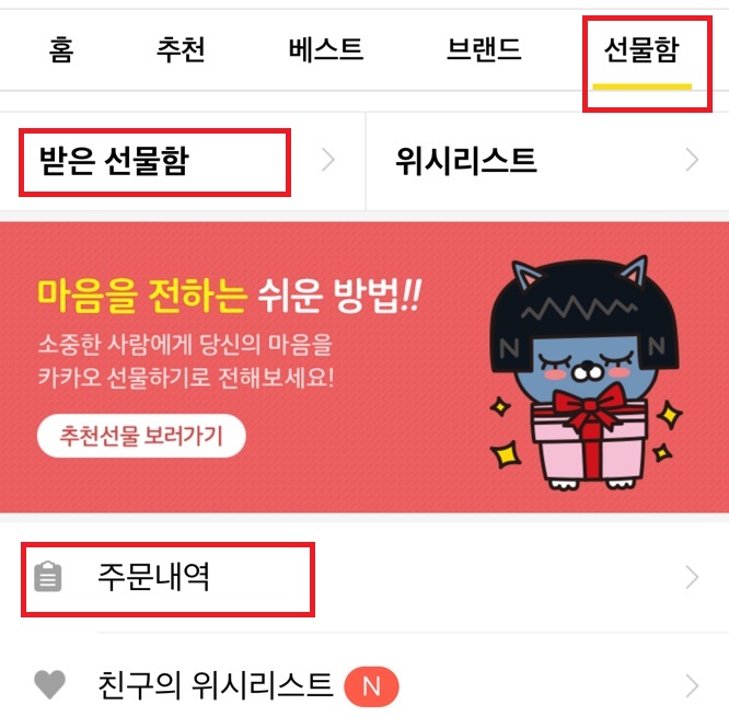 카카오톡 선물하기 따라오세요.