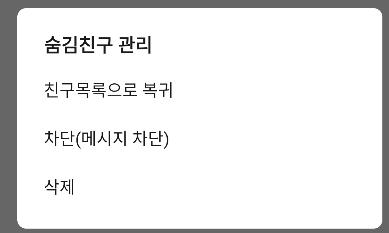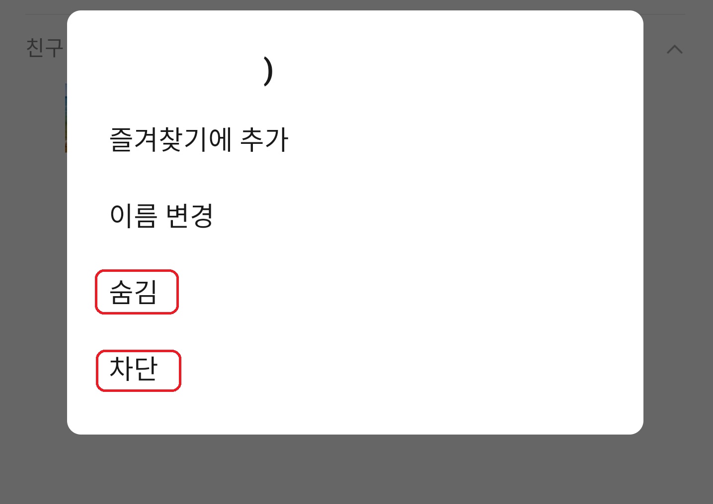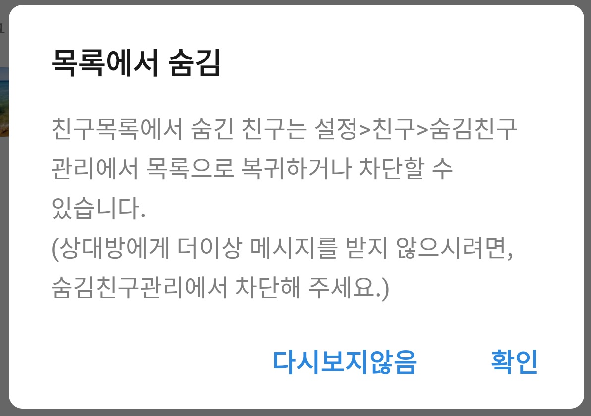 만약 숨김 해제를 하고 싶다면 친구 이름을 꾹 누르고 해당 항목을 선택하면 됩니다.