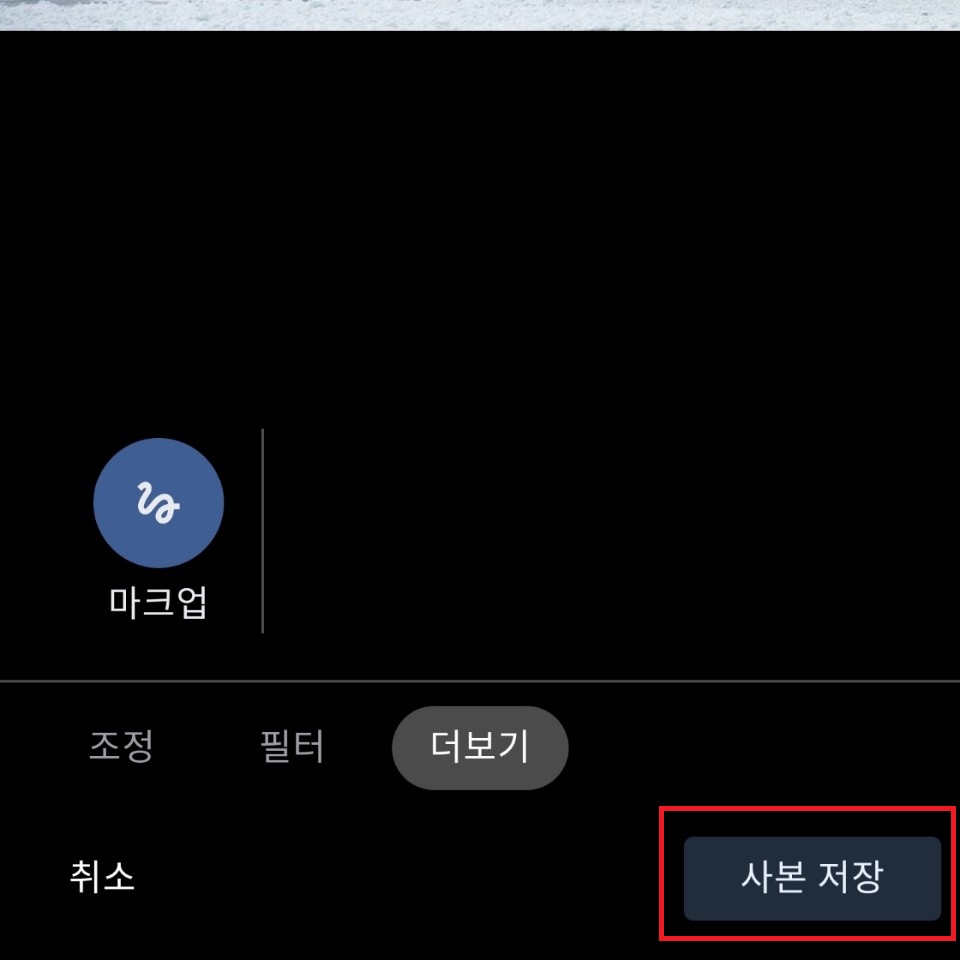 사진에 글씨 넣기가 완료 되었다면 화면 하단의 '사본 저장'을 선택하면 새로운 사진으로 갤러리에 저장됩니다. 사진에 글씨 넣는 어플을 이용하지 않고도 간단하게 내 사진에 글씨를 넣을 수 있었습니다.