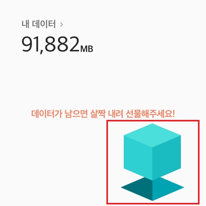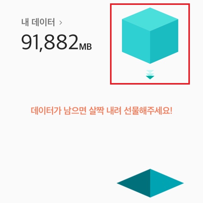핸드폰 데이터 선물하기를 위해 오른쪽 파란 박스를 아래로 끌어내려 주시기 바랍니다.