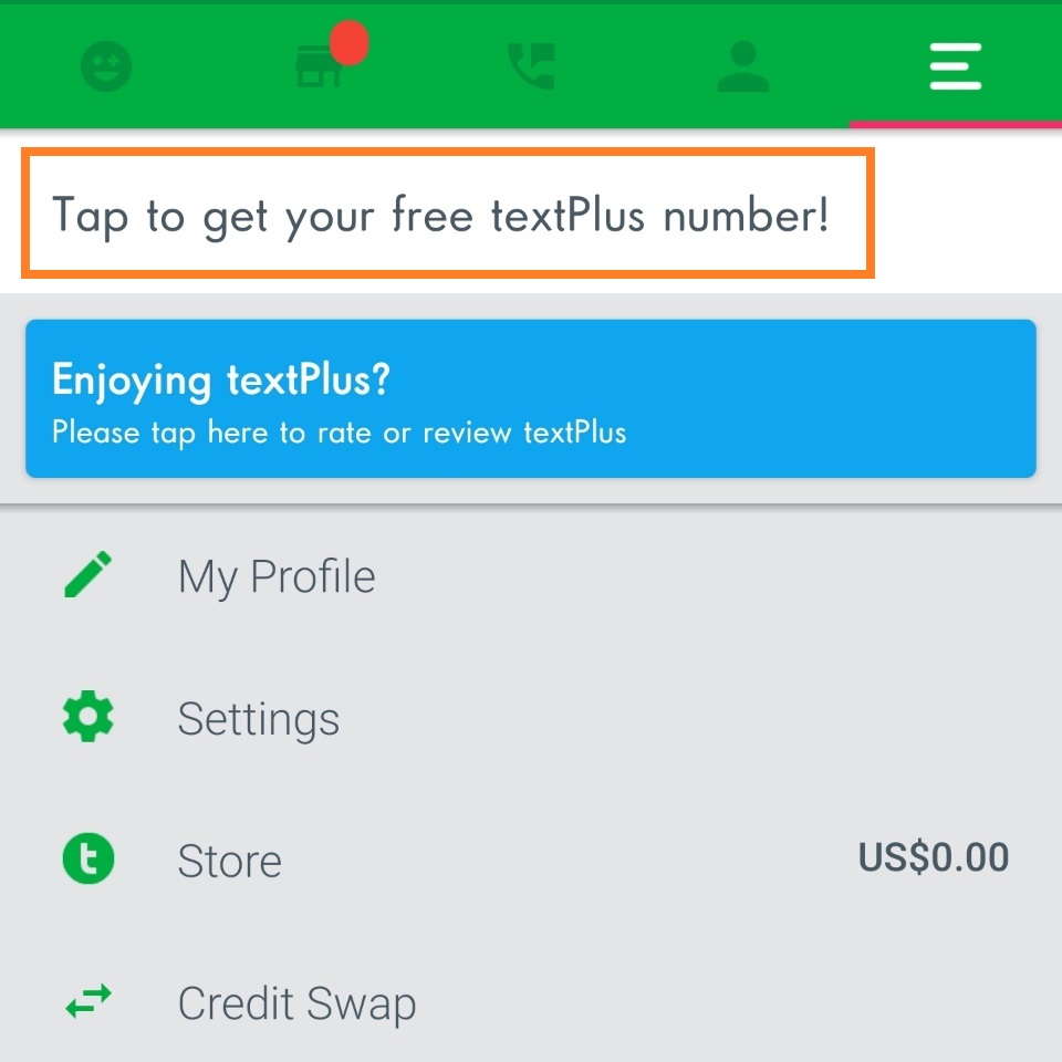 화면 상단에 'Tap to get your free textPlus number!'라는 부분이 있습니다. 텍스트 플러스 가상번호를 받으려면 여기를 눌러주세요라고 합니다. 해당 부분을 눌러줍니다.