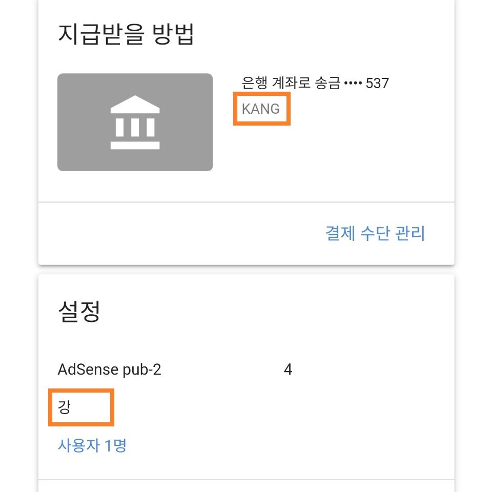 구글 애드센스 계좌 등록 : 타명의 계좌, 다른사람 계좌