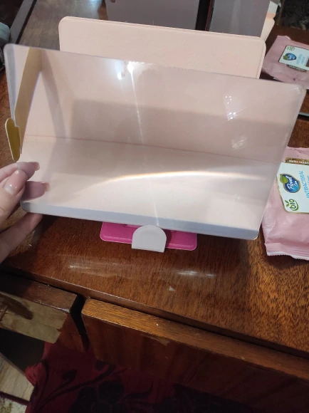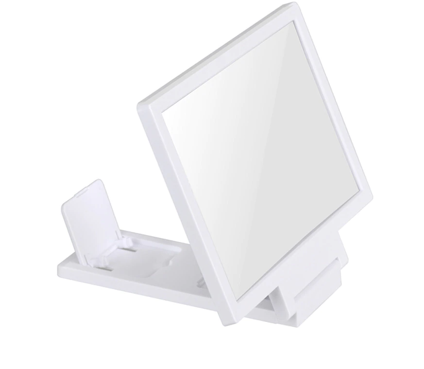 스마트폰 확대스크린 기본 모습은 위의 사진처럼 디귿자 모양의 거치대입니다. 뒷부분에는 핸드폰을 거치할 수 있는 거치 부분이 있고, 그 앞은 확대거울이 부착되어 있습니다. 스마트폰을 거치 후 영상이나 사진 등을 재생하면 앞에 있는 확대거울을 통해 큰 화면으로 감상하실 수 있습니다.
