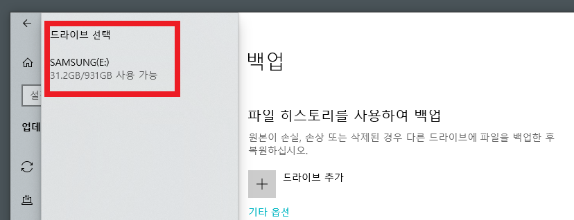드라이브 추가를 선택하여 외장메모리를 선택해줍니다.