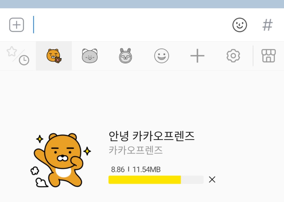 용량이 크지 않기 때문에 금방 다운로드가 완료됩니다. 다운로드가 되면 이모티콘 종류가 나옵니다.