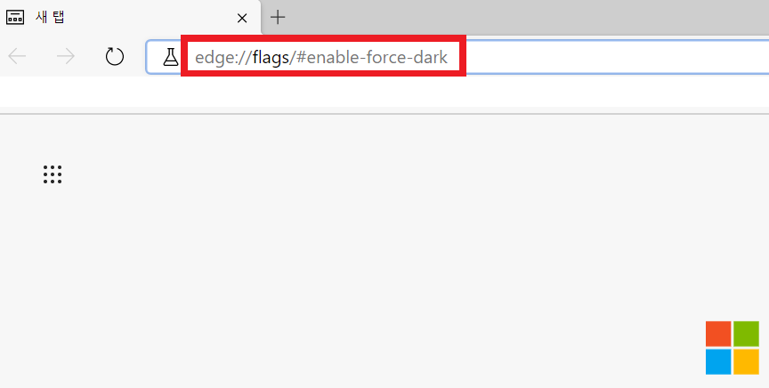 우선 엣지 브라우저를 실행한 후 주소창에 edge://flags/#enable-force-dark 를 입력합니다.